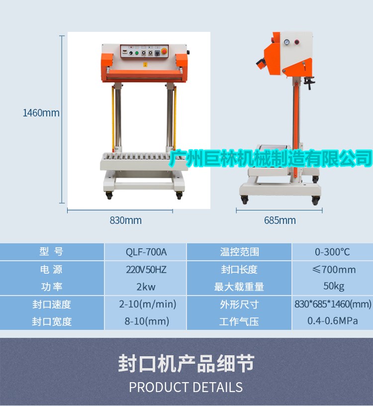 • 【QLF-700A立式氣動瞬熱封口機 】詳細信息