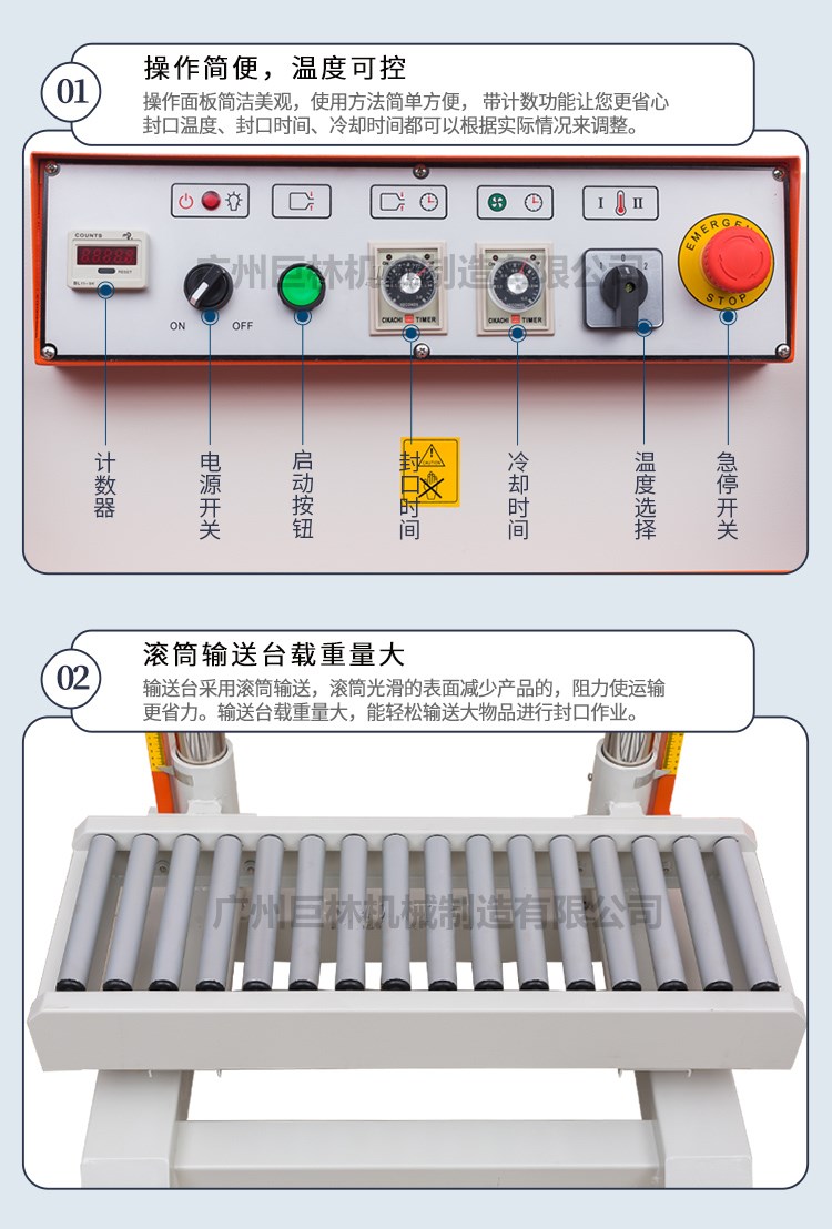 • 該系列封口機采用電子恒溫控制和無級調速傳動系統,具有自動連續封口、印刷產品標簽、一次完成之功能,并可臥、立落地使用。用于單層薄膜及各種復合薄膜的封口、制袋,廣泛應用在食品、制藥、種子、化工、輕工等部門。